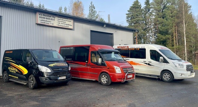 Kalustoomme kuuluu kolme tilavaa Ford Transit -minibussia, joihin mahtuu 1+8 henkeä. Kaikki autot ovat siistejä ja hyvin varustettuja, ja niissä on mukava ja turvallista matkustaa. Autoja saa kuljettaa B-ajokortilla.
